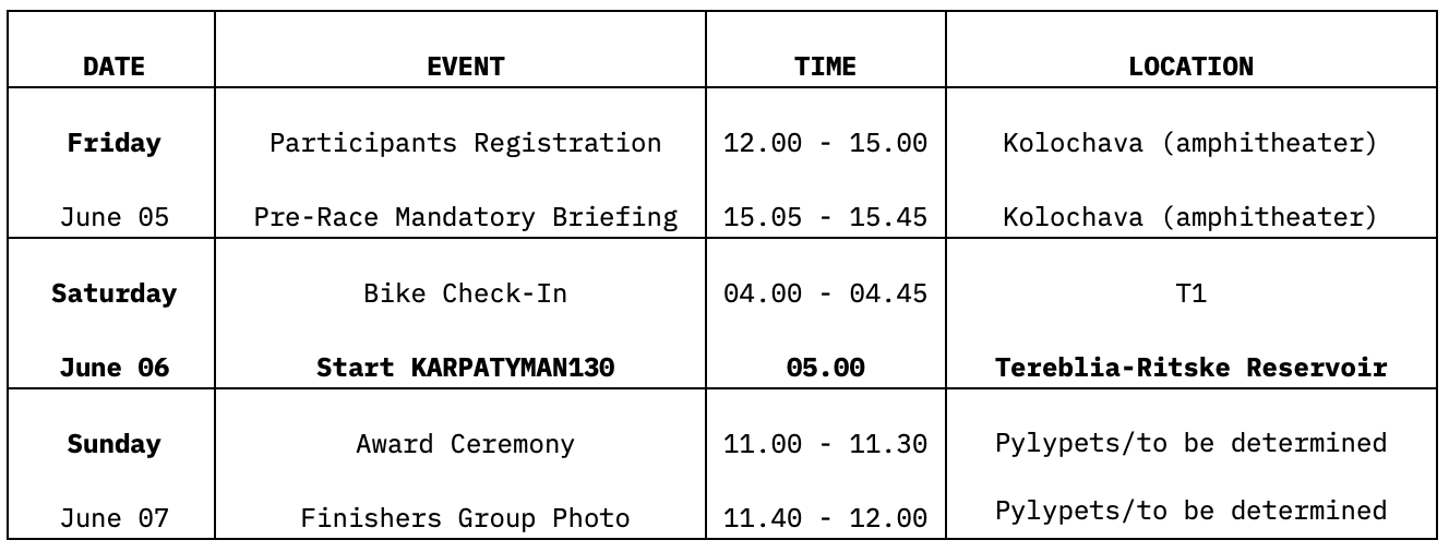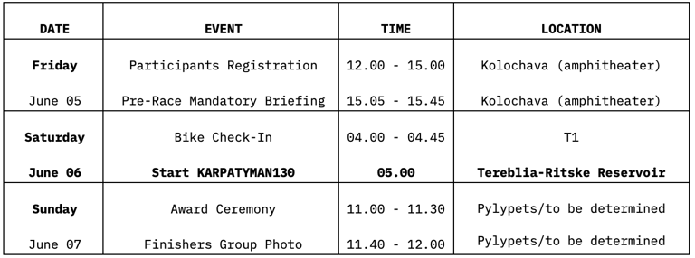 KARPATYMAN Extreme Half is a self-supported race. Support cars are not required.