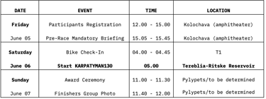 KARPATYMAN Extreme Half is a self-supported race. Support cars are not required.